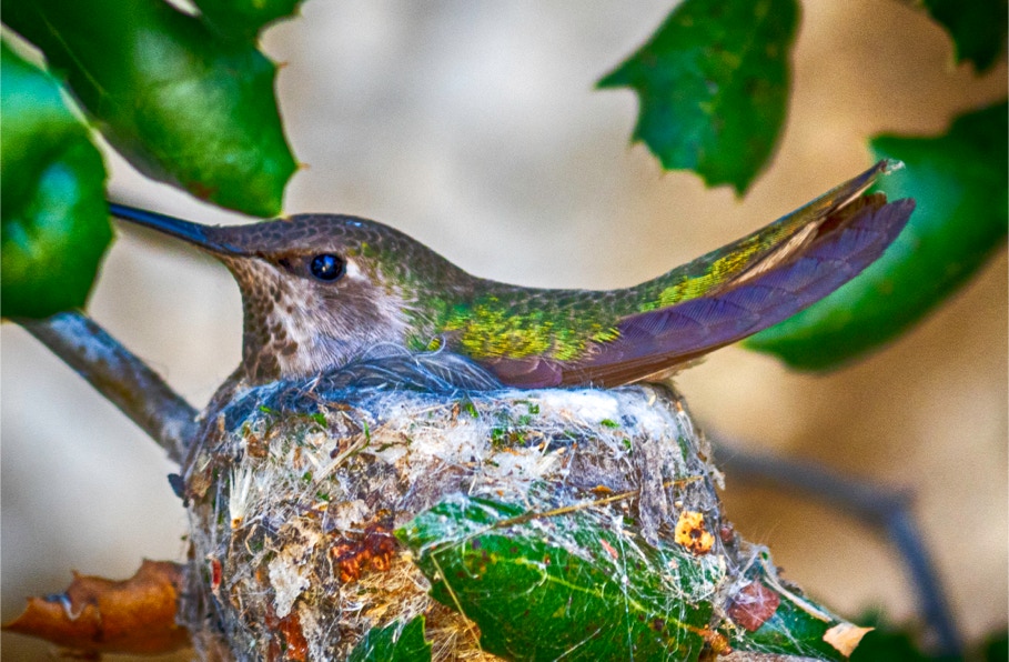On our normal Tuesday morning walk (we are chased out by the housecleaners) we went out to Placerita canyon. Tons of woodpeckers and here is a tiny hummingbird mom (I think) sitting on her nest.