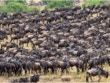Here is a small piece of the herd of Wildebeests that were thinking of crossing the Mara. A single photo can't do it justice. We were guessing at 20K critters.