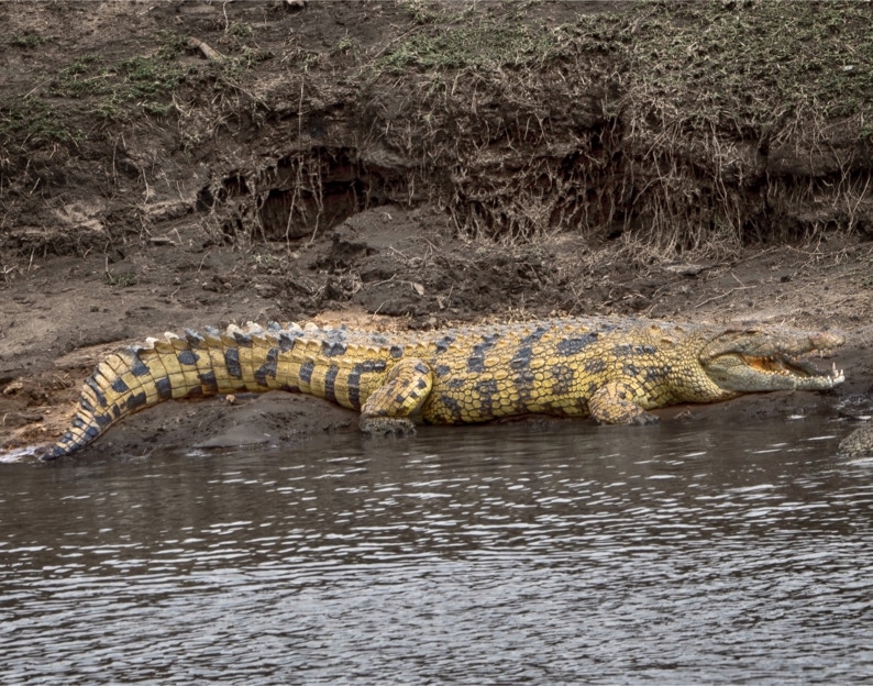 Here is a nice not so little Nile Croc sitting on the bank of the Mara River. There are signs next to the river saying no swimming/stay in your car, we paid attention. This guy was 13-14 foot long. There were so many dead wildebeests floating in the river from upstream crossings that these guys were full.