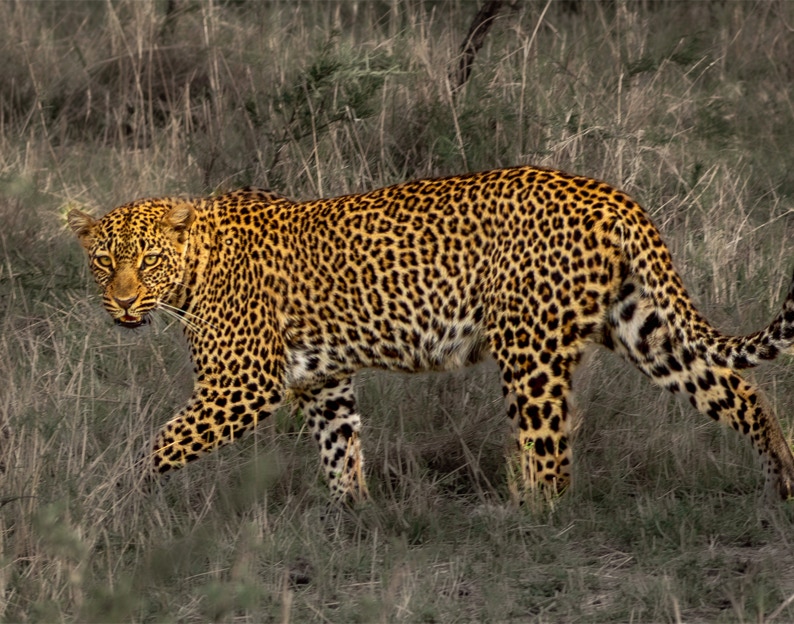 Leopards are amazingly cool. Here is a grab shot of one walking away but looking back.