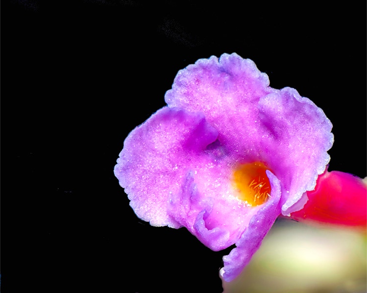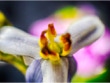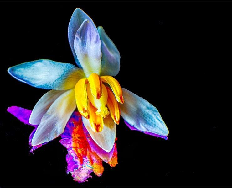 I am trying to learn to take pictures of flowers mostly focused in tiny drops of water. Painful at best. Here is a flower from the garden before the drop setup. Usually I would try for high key but here I shot low key since I need the black background for the drop setup to work well.