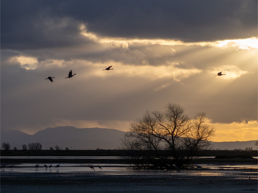 A winter visit see the sand hill cranes and other birds that winter there and to witness the goosanity