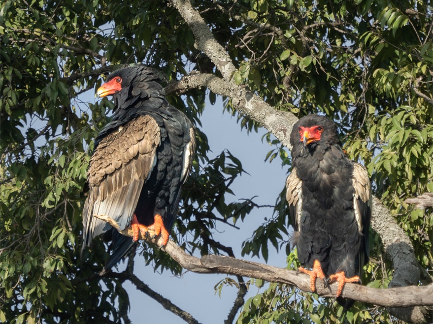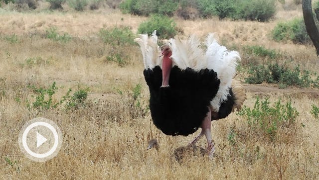 Male ostriches put on quite a show to win over the females. They blush a bright scarlet on their beaks, necks and shins, then they perform an elaborate courtship dance, waving their wings and swinging their necks in an impressive display.