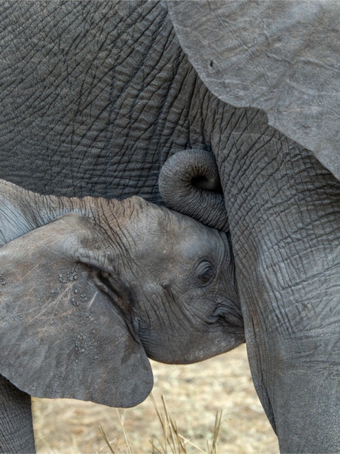 These two baby elephants seem to be having a great time practicing their jousting skills, but mom has other ideas.