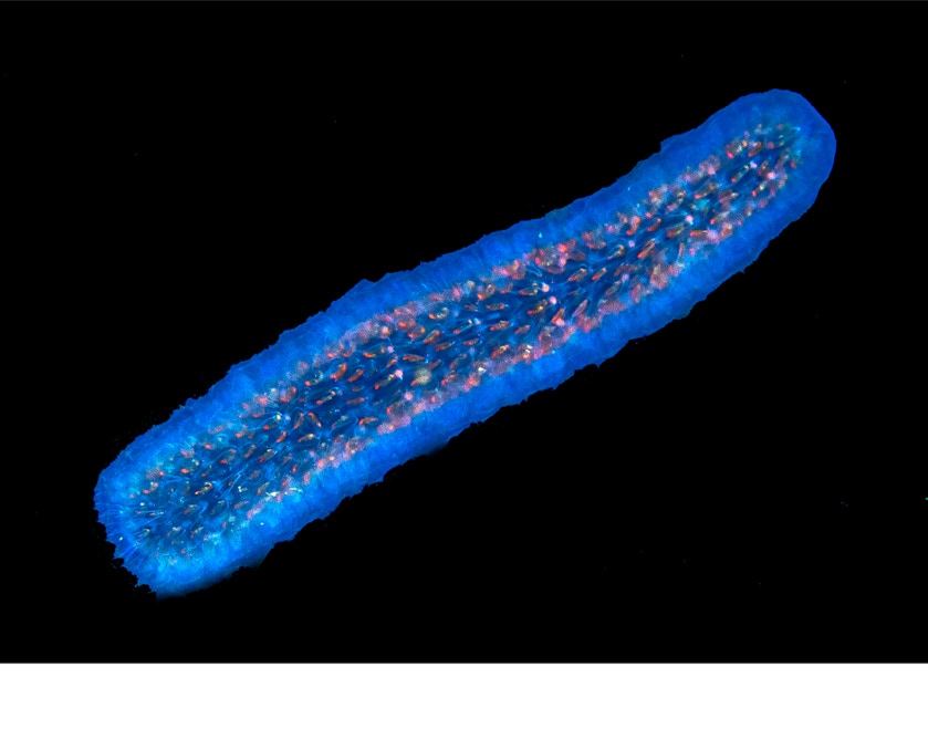On our last reef dives, I didn't only shoot with the square tubes. Here is a nice little Hopkins Rose (Okenia rosacea) here sitting on the telescope felt stage and having a bad hair day.