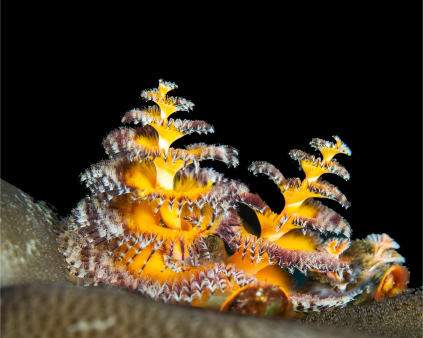 Here is a nice little Christmas Tree Worm from a dive in Banda on our last trip. I love these guys, and have tons of pics.