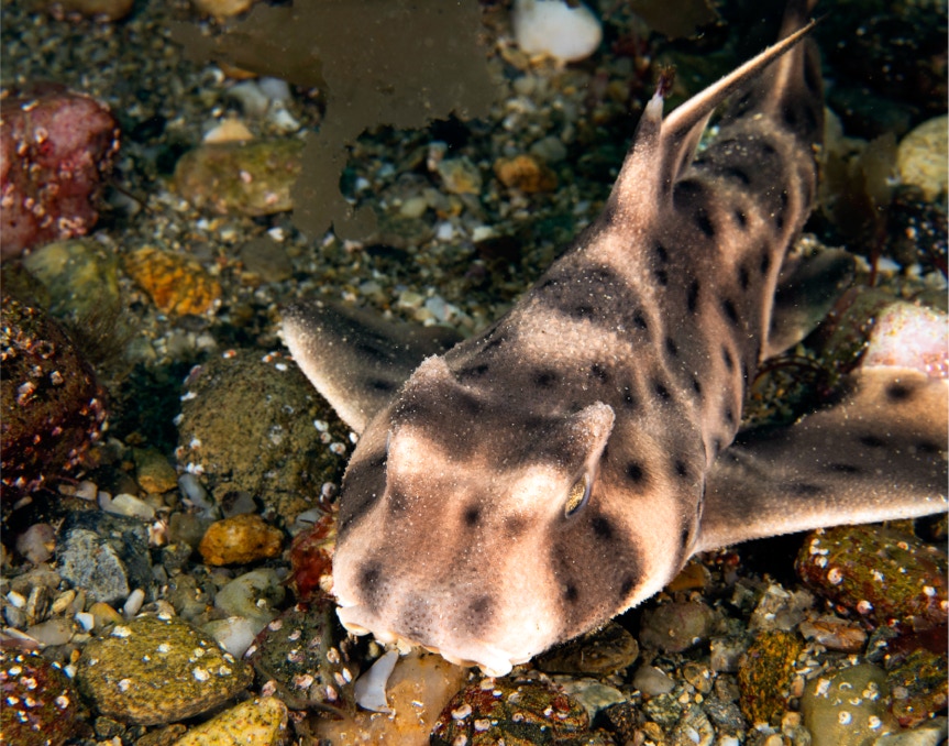 Aren't you afraid of sharks? Probably the most common question we get (along with how deep do you dive?). Well not of this guy. Here is a nice little (maybe 8 inches long) horn shark from our recent trip to Catalina with friends on the Giant Stride.