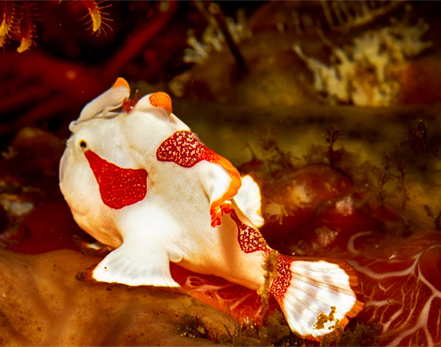 Here is a nice little (tiny) warty frogfish juvenile from our recent Komodo adventures. He never ever looked at me, so I said what the heck just shoot him this way. Enjoy.