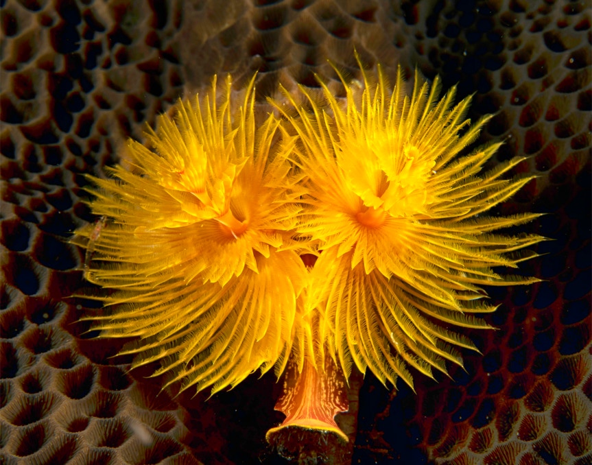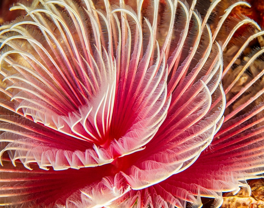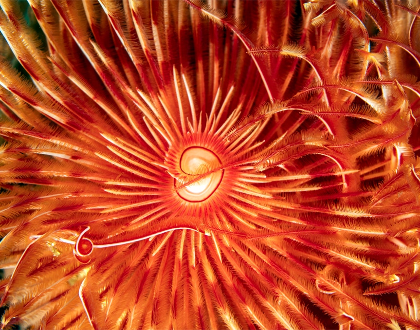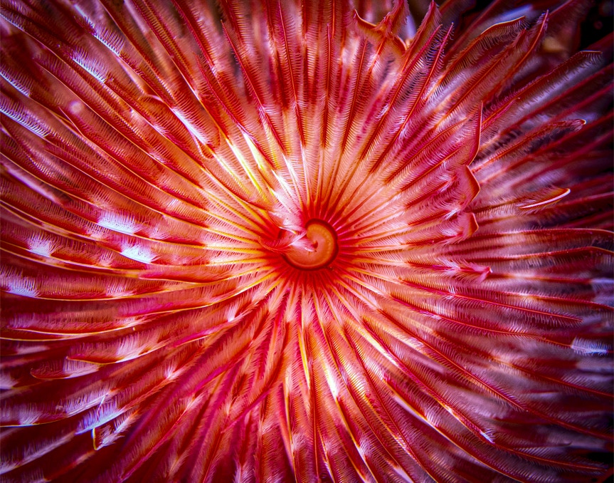 Here is a nice little feather duster worm from Komodo. I like the broken symmetry especially the little curl near lower left. In any case, enjoy.