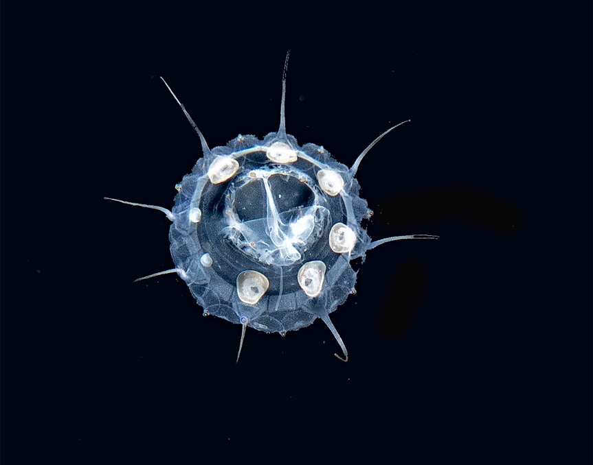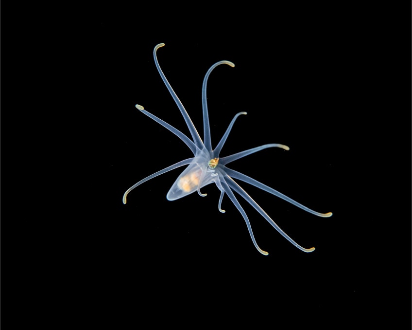 We did a bunch of black water dives on our recent Komodo trip. Here is a neat tiny jelly (don't have a clue) we found one night. Enjoy.
