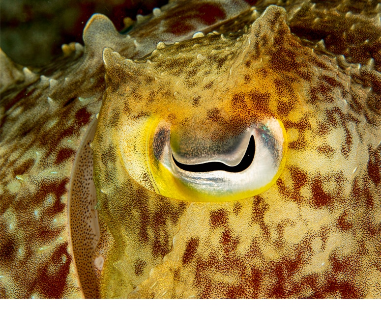 Here is a nice little eye of a cuttlefish. In an intriguing experiment some guys from Woods Hole set out to ask if cuttlefish use each eye for different things. Complex experimental setup that allowed them to see if the cuttler used one eye for finding prey and the other eye for looking for potential threats. It turns out that cuttlefish predominantly use their left eye for looking for threats and their right eye for finding and catching food. The statistics were quite significant (p<0.001). The authors suggest that this lateralization means specialized brain functions for food or flight are similarly laterized. In any case enjoy and if you want a copy of the paper let me know.