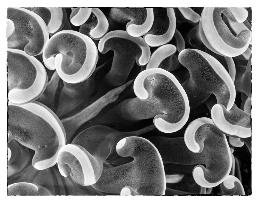 Here is a nice little mushroom coral shot in black and white (according to Olympus) and post processed to get a kind of retro BW look. Enjoy.