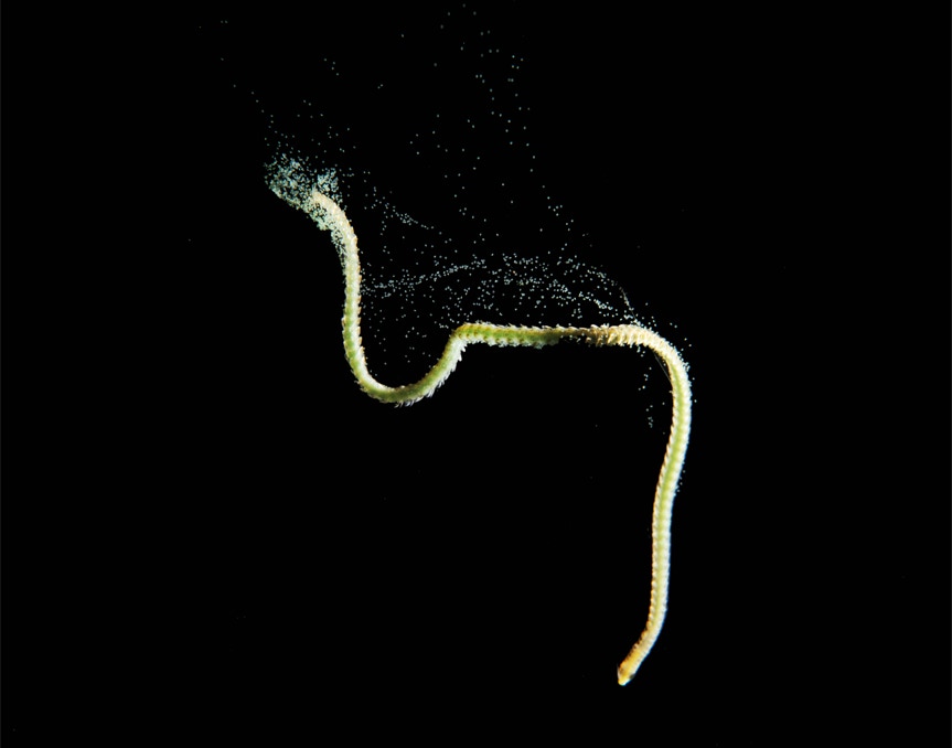 Here is a nice little worm (unkown to me) laying eggs on a blackwater dive in Komodo from our recent trip with friends. Enjoy.